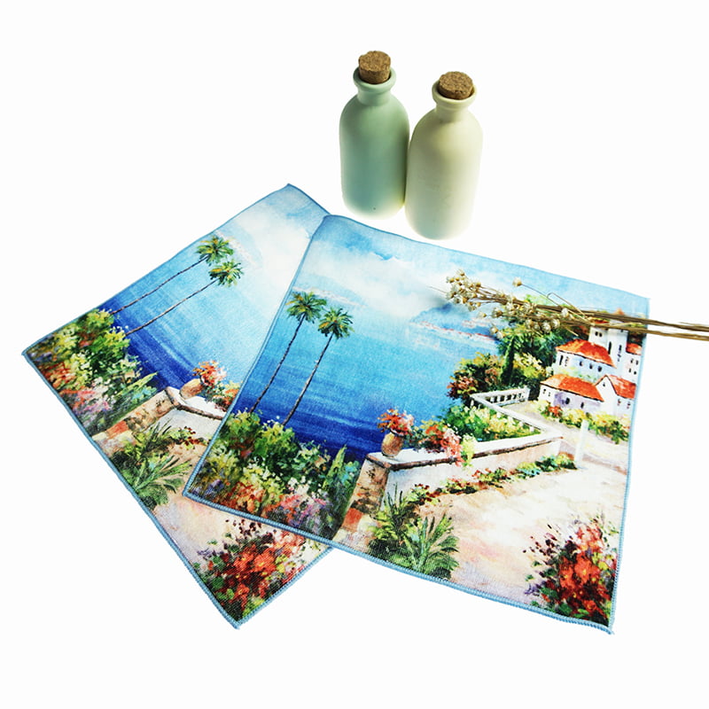 Chiếc khăn vuông này được làm bằng vải cotton 400GSM, sử dụng công nghệ in kỹ thuật số và mực nhập khẩu, tiết kiệm năng lượng và thân thiện với môi trường, và có MOQ thấp.