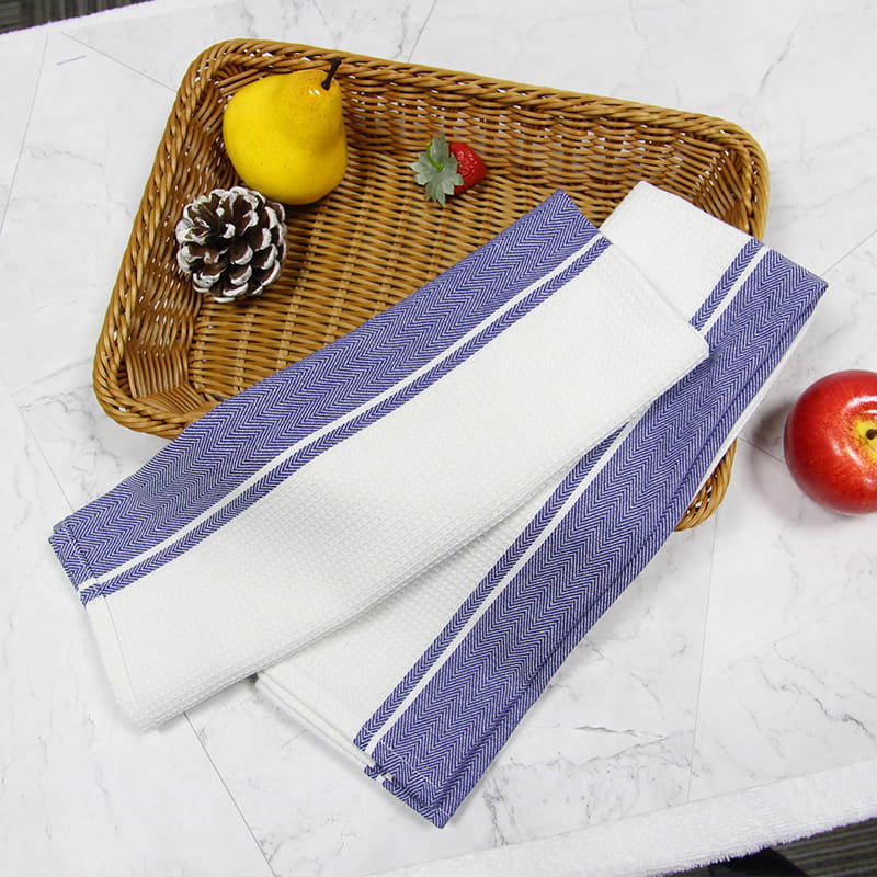 Khăn trà này được làm bằng vải bánh quế 220gsm với thiết kế sọc, sự khéo léo tinh tế và sự đơn giản.