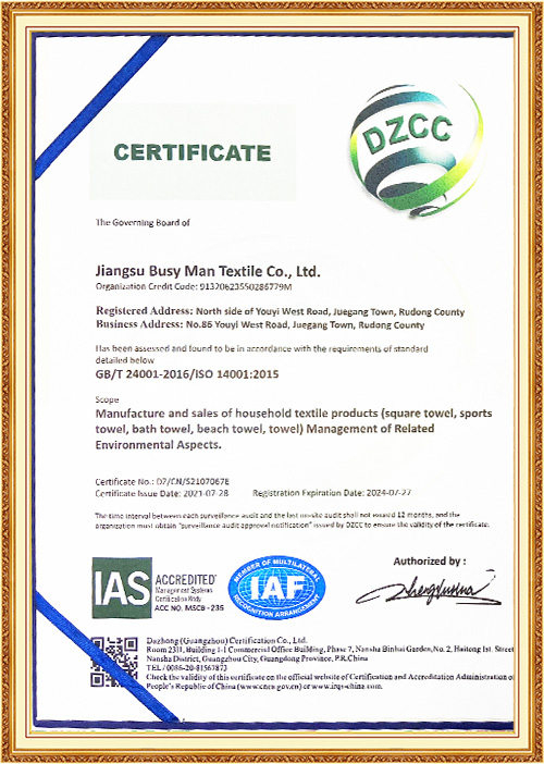 Jiangsu Busy Man Dệt Tấm dệt, Ltd. được thành lập vào năm 2010. Đây là một công ty với 12 năm kinh nghiệm trong sản xuất và gia công khăn OEM. Chúng tôi chuyên sản xuất các loại khăn khác nhau như khăn vuông, khăn tắm, khăn thể thao, khăn tắm lớn và khăn lạnh. Hiện tại, Busy Man Textile có diện tích nhà xưởng hơn 9.500 mét vuông, 2 dây chuyền sản xuất khăn in kỹ thuật số và sản lượng hàng ngày hơn 15.000 mét vuông.